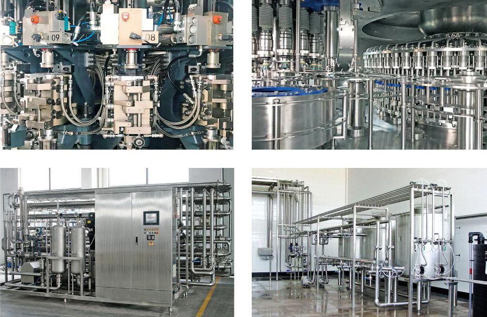 吹瓶、空壓、UHT、灌裝、凈化、瓶蓋殺菌、消毒液調配、無菌水、無菌氣、倒瓶噴淋、實瓶輸送、套/貼標、裝箱、碼垛、電氣控制、工程設計和施工等。