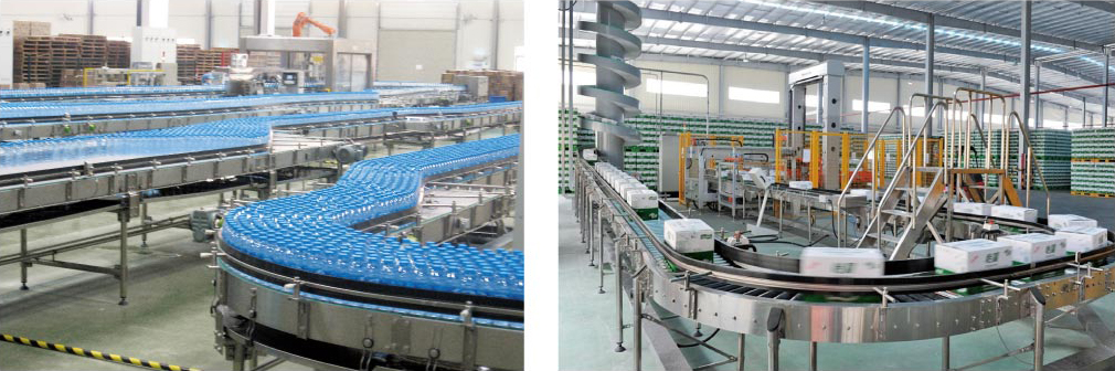 | 整條生產線運行效率的高低,除了吹瓶、灌裝、貼標等關鍵設備以外,也取決于輸送線及關聯設備配置的合理性。輝河的后道包裝系統,充分考慮了以上因素,追求各部分設備配比的最佳組合。 主要包括:瓶坯輸送、瓶蓋輸送、空瓶輸送、實瓶輸送、實箱輸送、套/貼標、裝箱(膜包)、碼垛等。 |